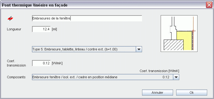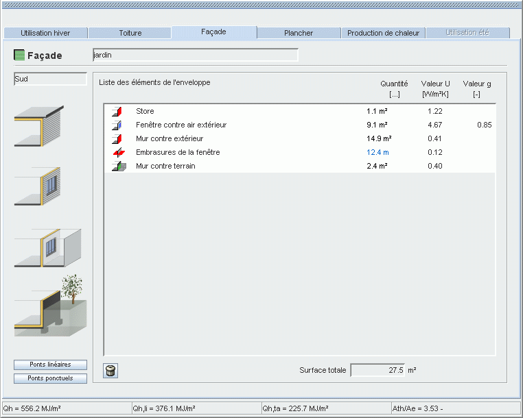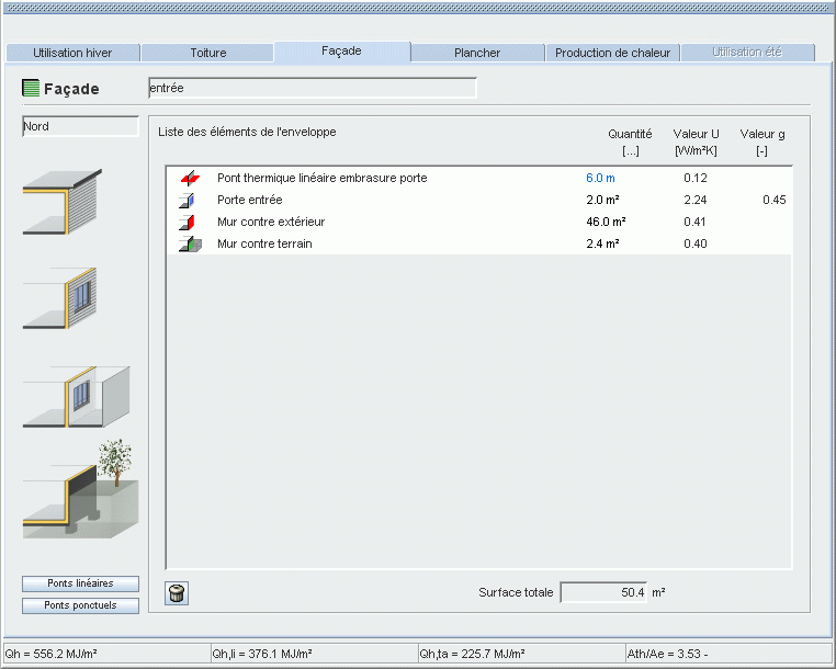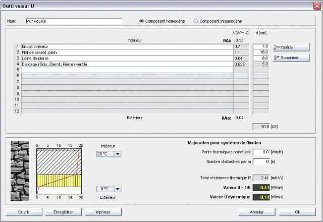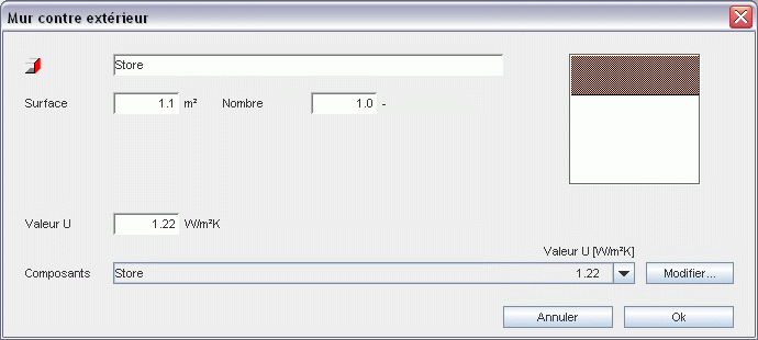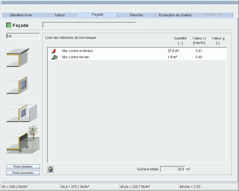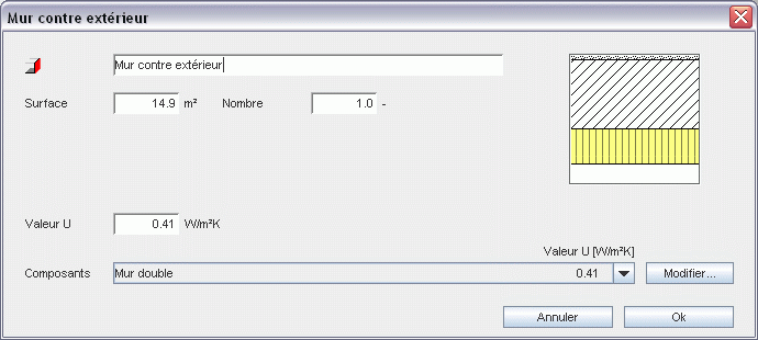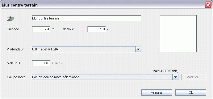 o murs contre terrain : valeur U = 0.40 [W/m²K]