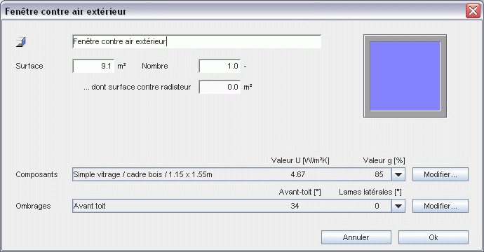 la saisie d'un objet simple (shoebox) en bilan thermique à
