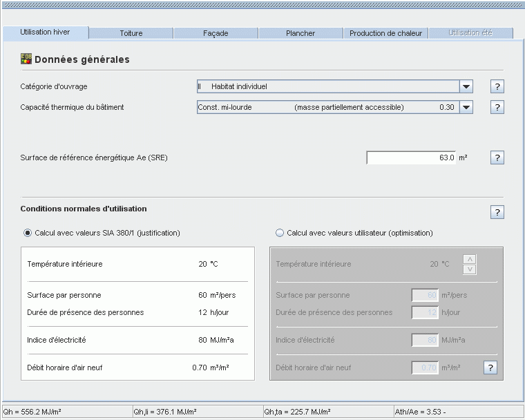 o toiture : catalogue EnerCAD "SIA limite : isolation